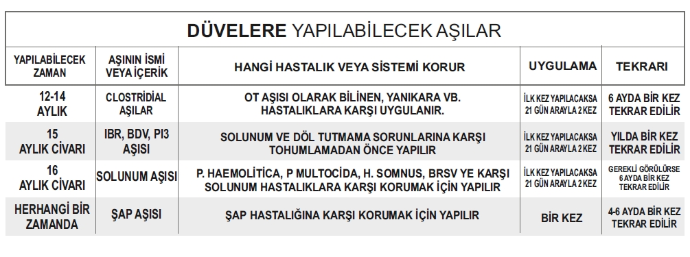 Buzağı, Düve ve İneklerde Aşılama